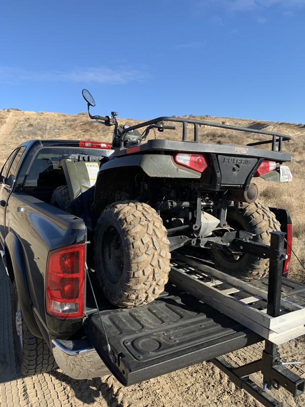 The unique design attaches to your trucks 2 receiver hitch and then to a 2 hitch ball not included on the rear of your ATV. In addition the tie-down protects against the ATV entering the cab of the truck in the event of an accident. Zip - Buy now pay later.