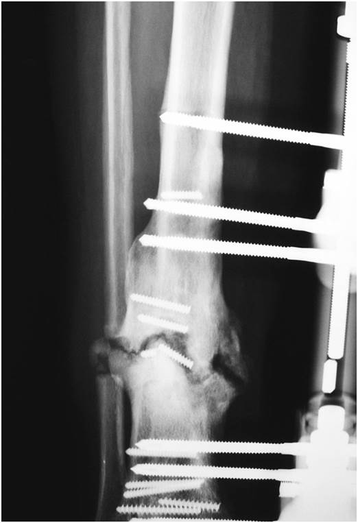 De las fracturas distales de tibia 15 se produjeron como resultado de caídas de baja energía y una se produjo de manera espontánea. Paciente de 30 años de edad con fracturas en tibia y peroné derechos después de caída desde una altura elevada. Así como otras roturas de hueso estas también son de carácter delicado pudiendo presentar complicaciones graves.